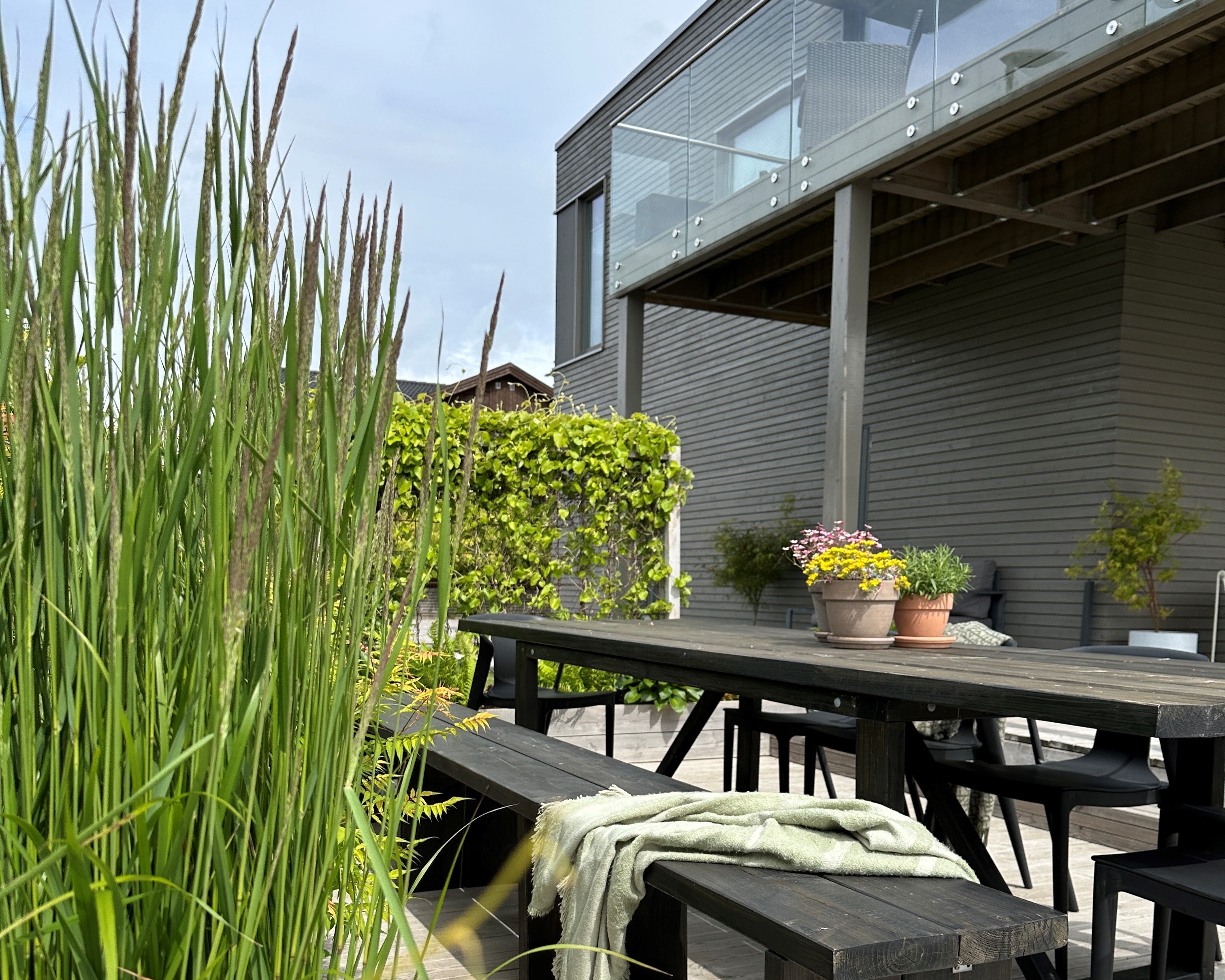 Det tok meg lang tid å bli overbevist om å bruke stoff som levegg, siden jeg helst vil holde alt naturlig. Men etter at vi fikk på plass en stofflevegg, ville jeg aldri vært foruten! Stoffleveggene gir fleksibilitet, de kan enkelt settes opp og tas ned, og de er perfekte for å skjerme mot vind eller innsyn.